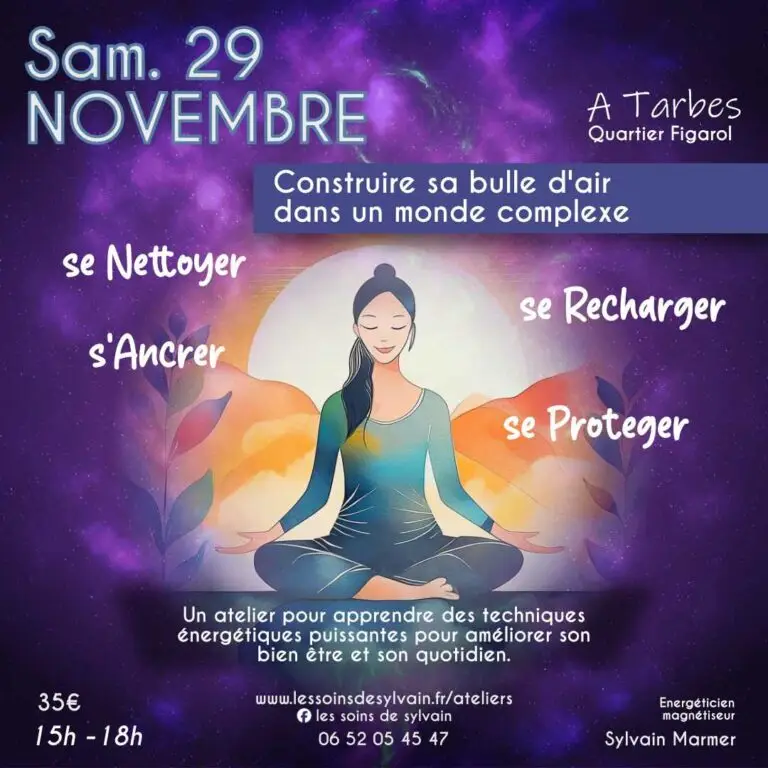 Voila pourquoi j’ai voulu créer cet atelier, pour transmettre des techniques énergétiques simples mais puissantes accessibles à toutes et à tous, pour pouvoir au quotidien prendre soin de son bien-être physique et émotionnel.